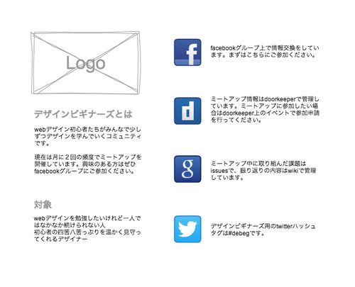 デザインビギナーズという初心者がデザインを勉強する会に参加しています。ハッシュタグは #debeg 今回の6回目は、名刺作り。 事前にネタ出しをして、やりたいものに投票して決まる。 いつもはだいたいプログラマだけでチュートリアルして泣きそうになってた…